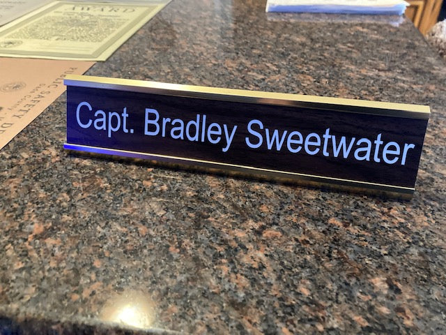 1 2" x 10" Wood Grain Name Plate " Capt. Bradley Sweetwater"