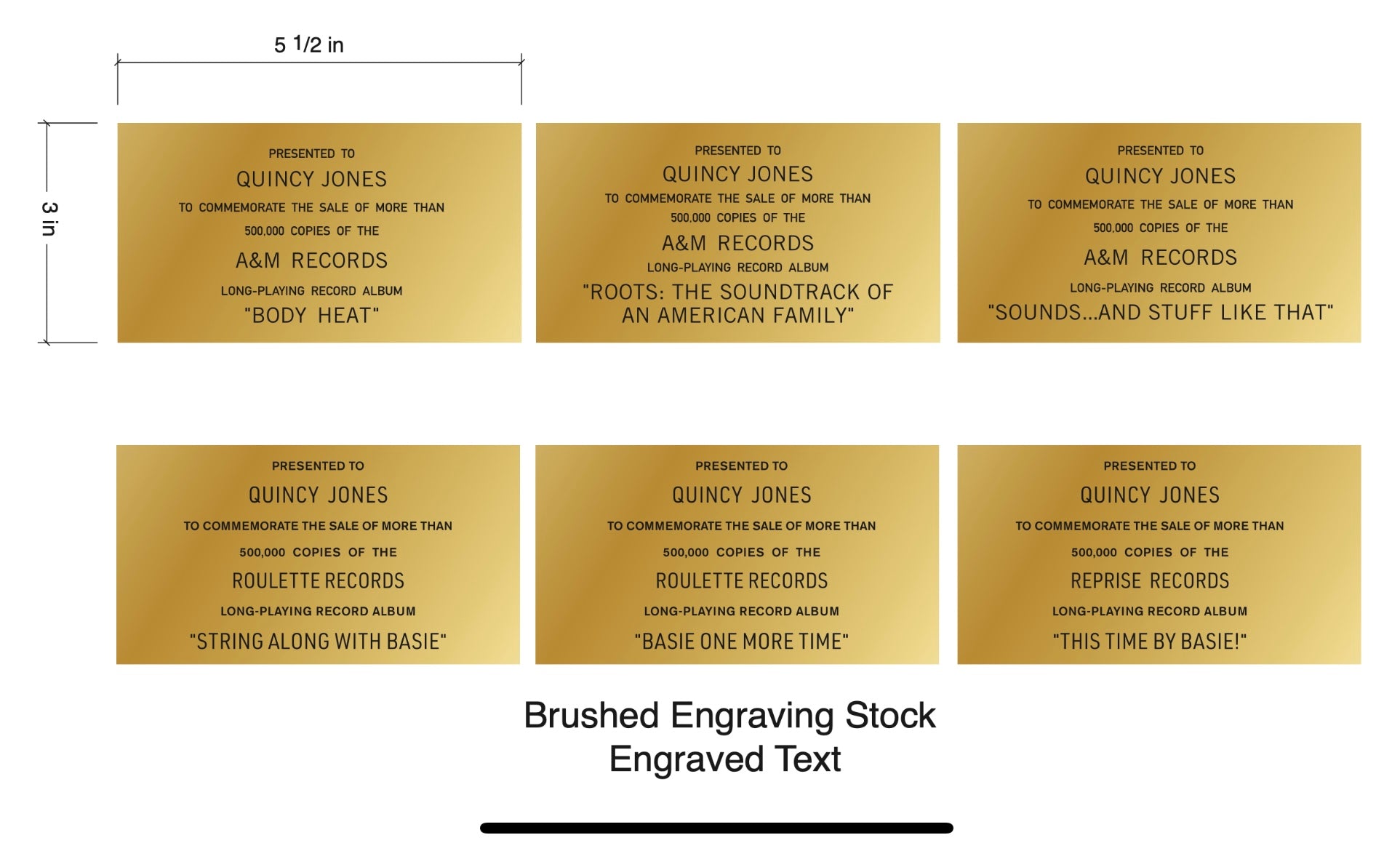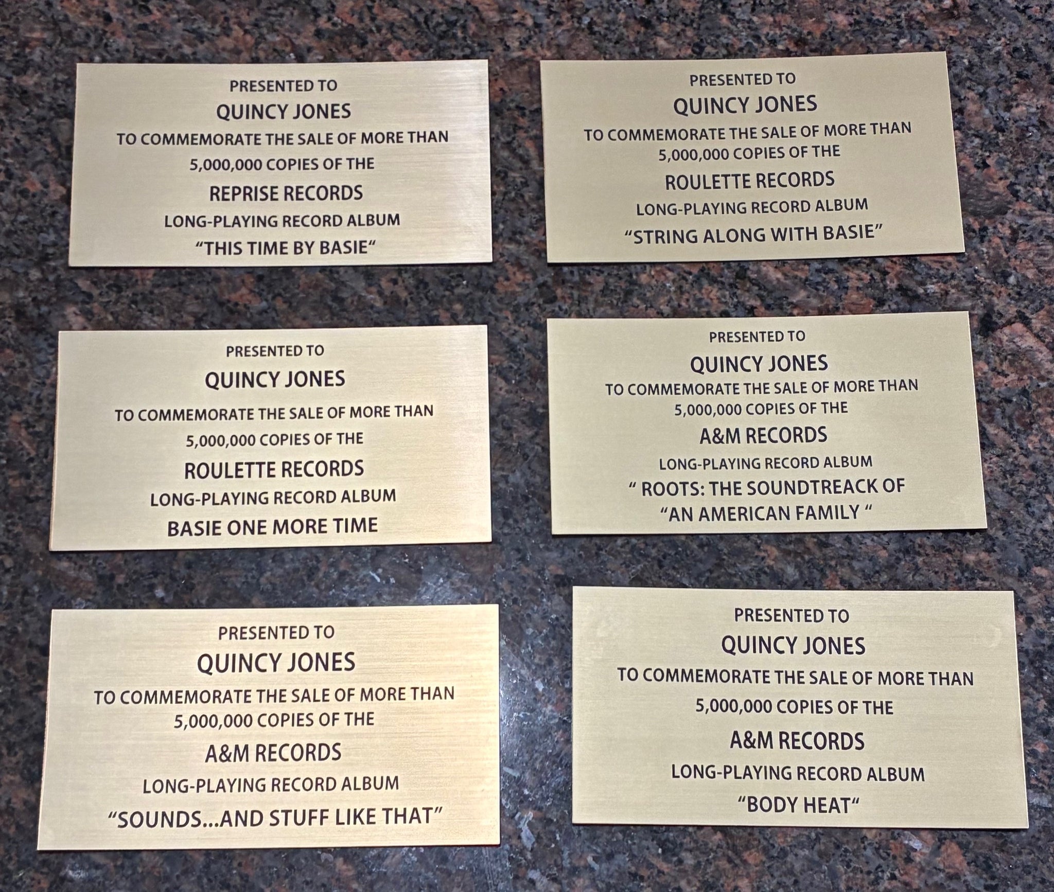" Quincy Jones "  Brushed Brass over Black